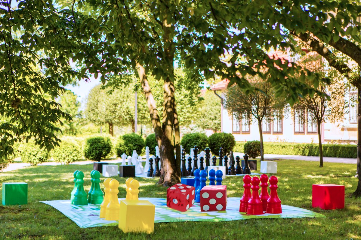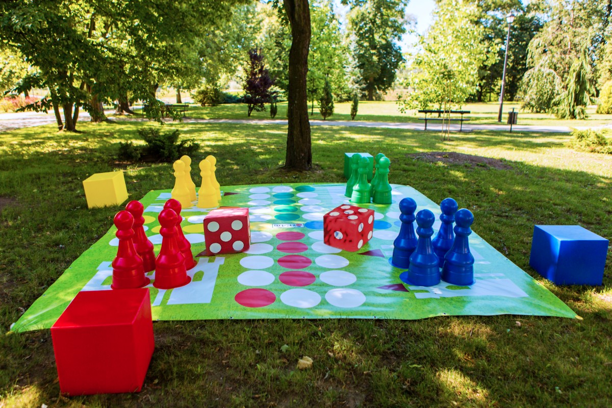Specjalna duża kostka do gry w Chińczyka na zewnątrz (w plenerze – w parku czy na działce).